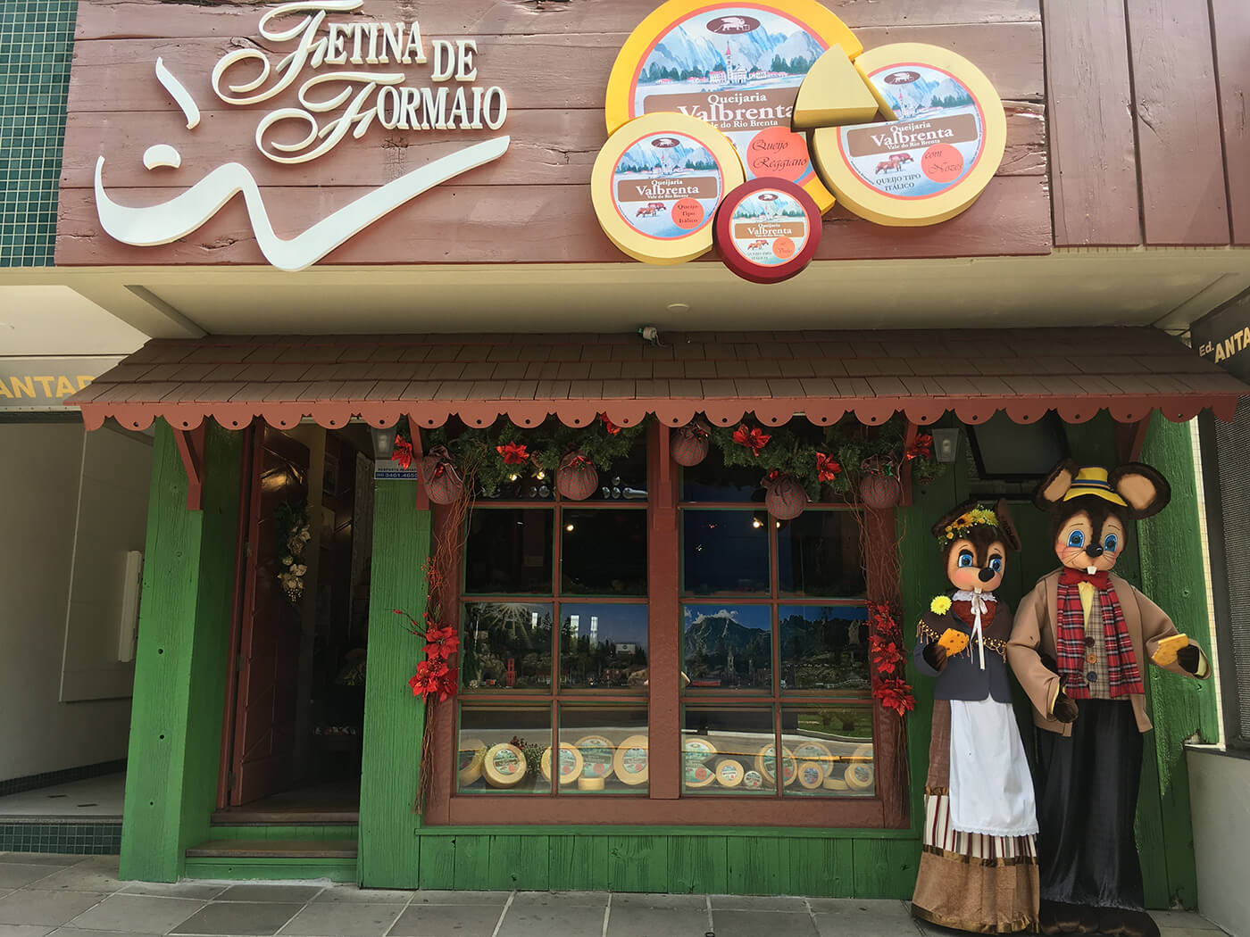 Possibilidade de adquirir os produtos com a qualidade da região, entre chocolates caseiros, malhas, artesanato, couro e produtos coloniais.