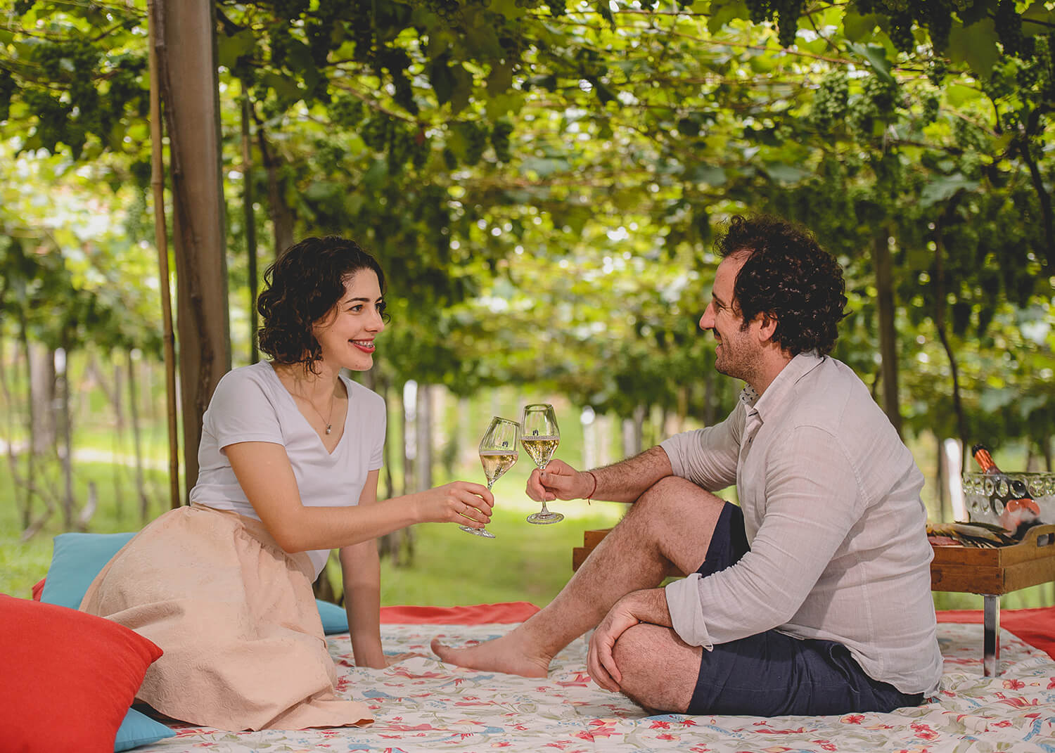 Visitação à vinícola com degustação e realização de um piquenique a sombra das videiras.