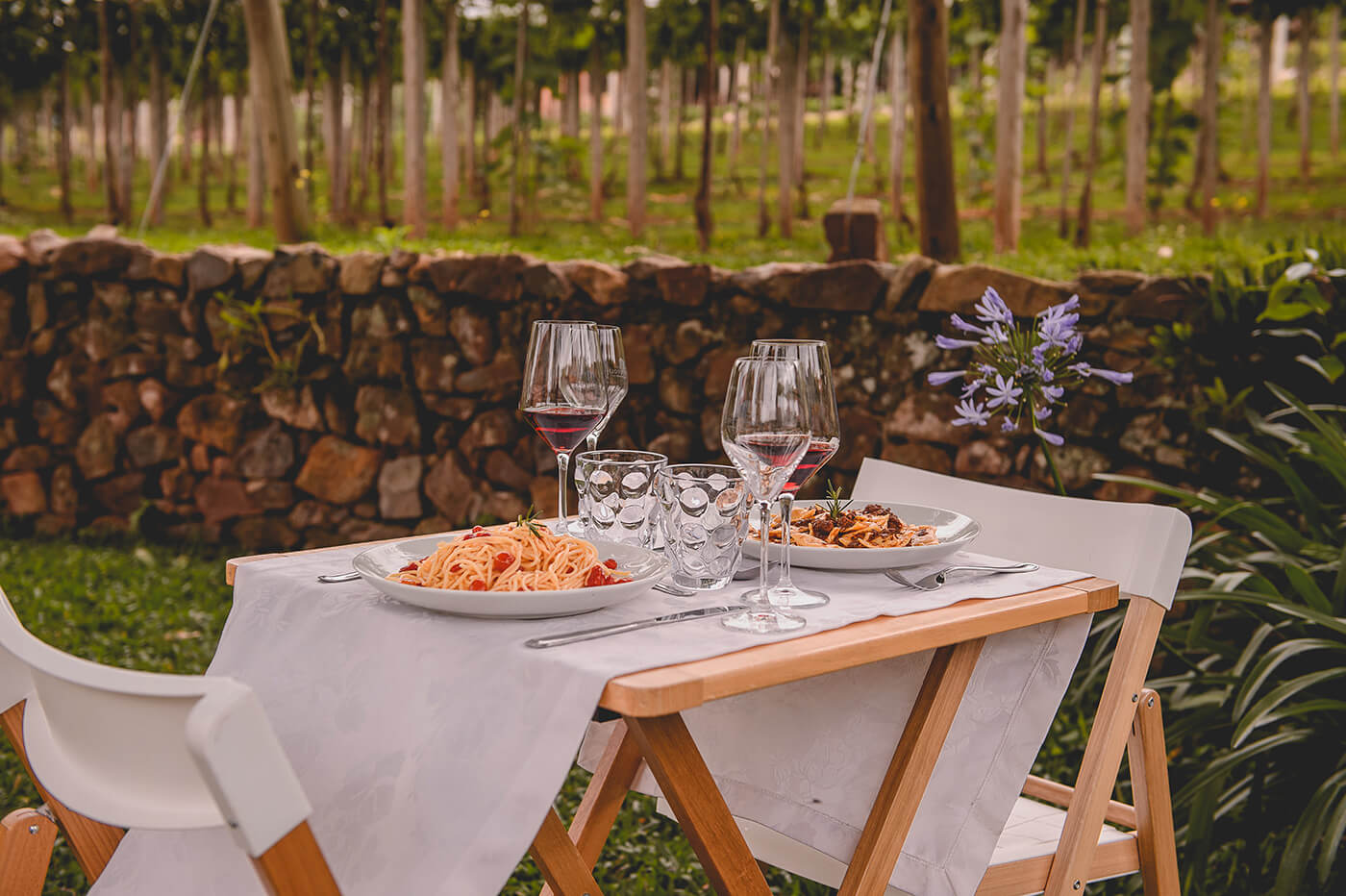 Através de um cenário perfeito é possível relaxar em meio aos encantos naturais da Serra Gaúcha provando um cardápio completo para almoço ou Happy Hour, mais uma garrafa de vinho ou espumante a cada duas pessoas. Um momento memorável para desfrutar em casal ou compartilhar com amigos.